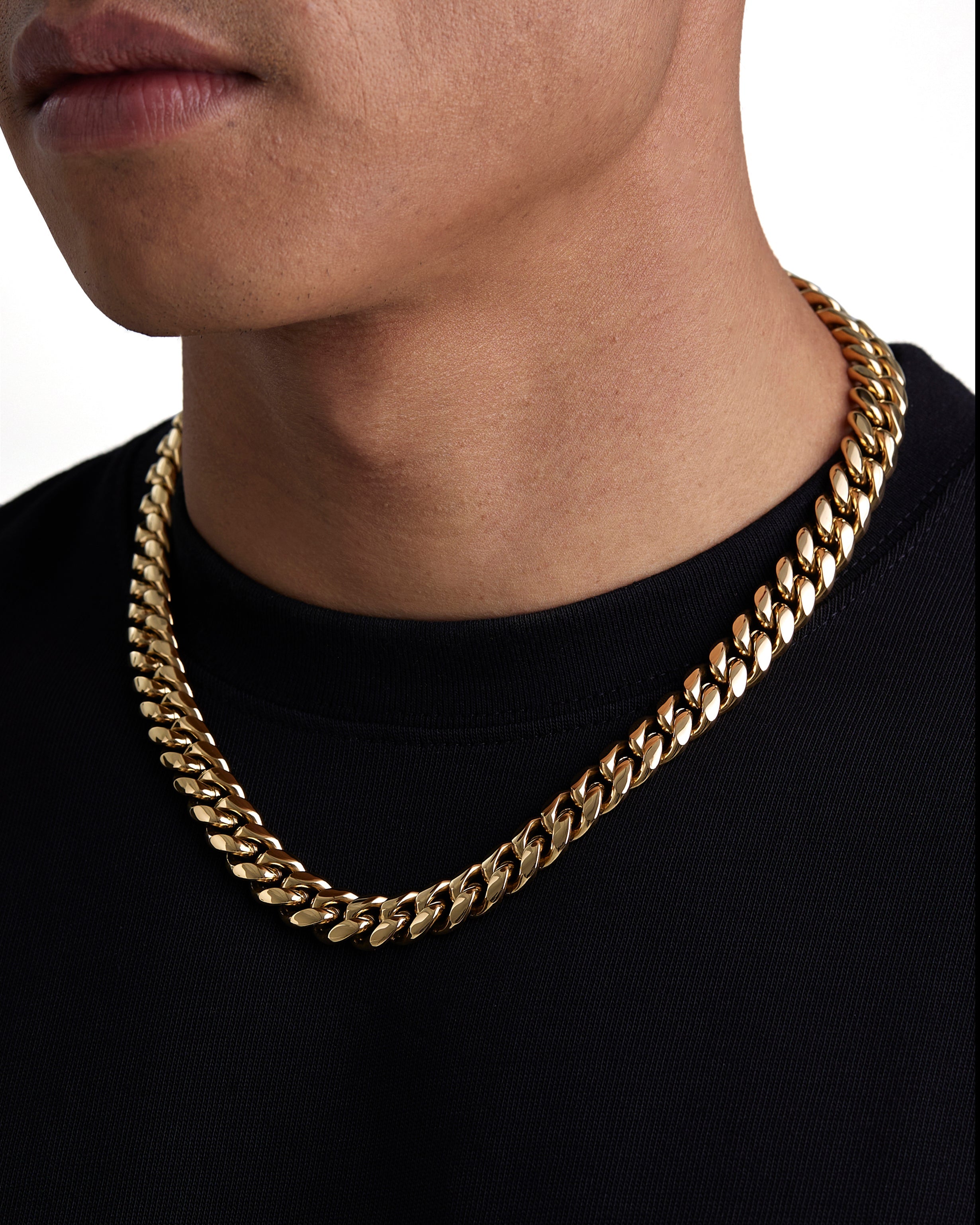 PLAIN - 12mm キューバネックレス (18K Gold)